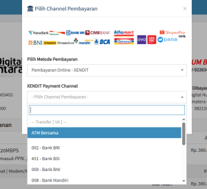 1. Pilih bank dan saluran pembayaran yang Anda gunakan (ATM/internet/mobile banking).